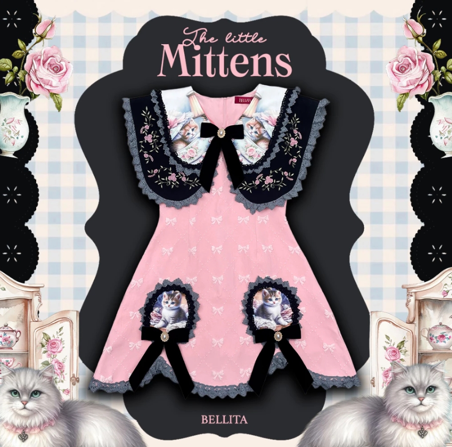 BELLITA มินิเดรส สีดำ ชมพู ดีเทลทั้งชุด