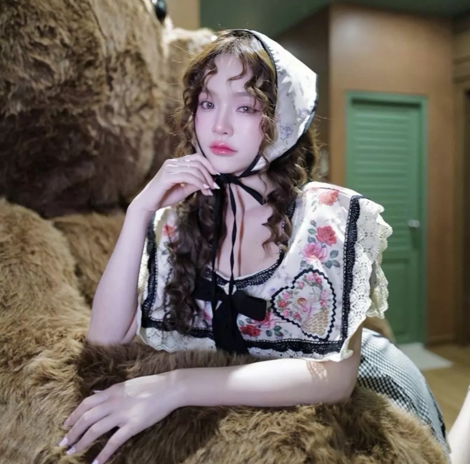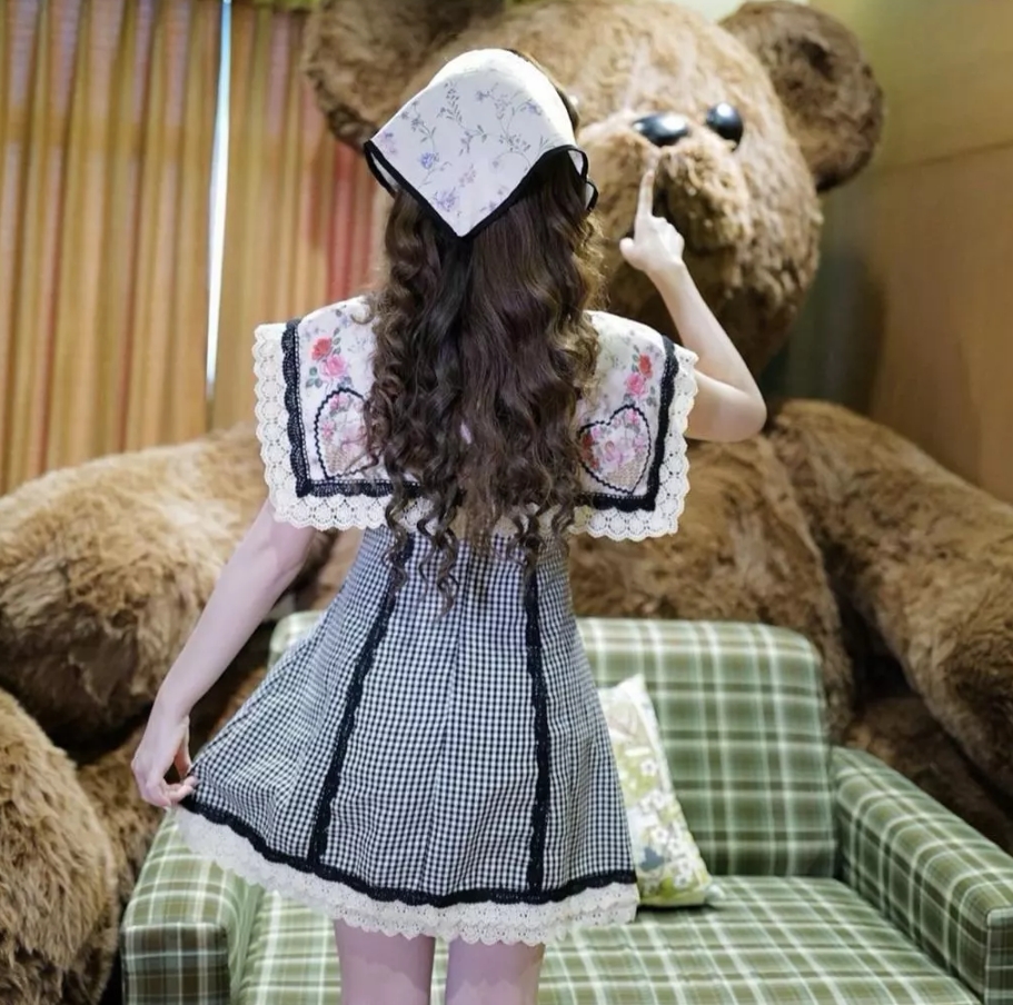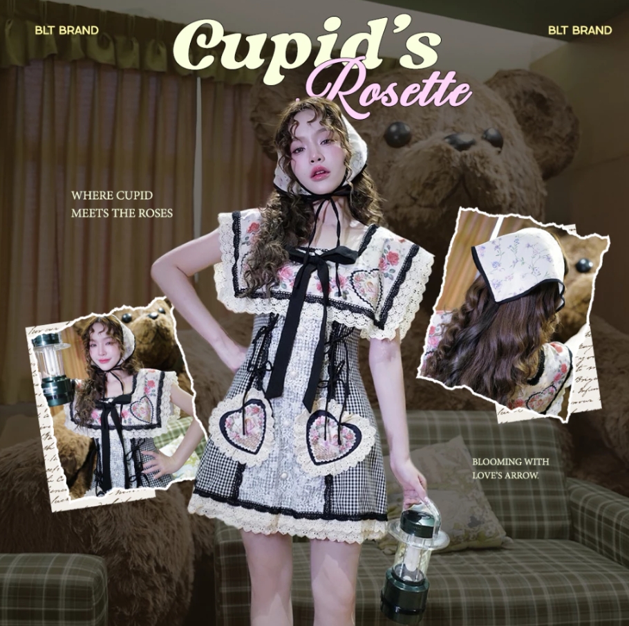 BLT BRAND มินิเดรส + ผ้าโพกผม แต่งระบายลูกไม้ เดรสผู้หญิงน่ารักใส่เที่ยว คาเฟ่