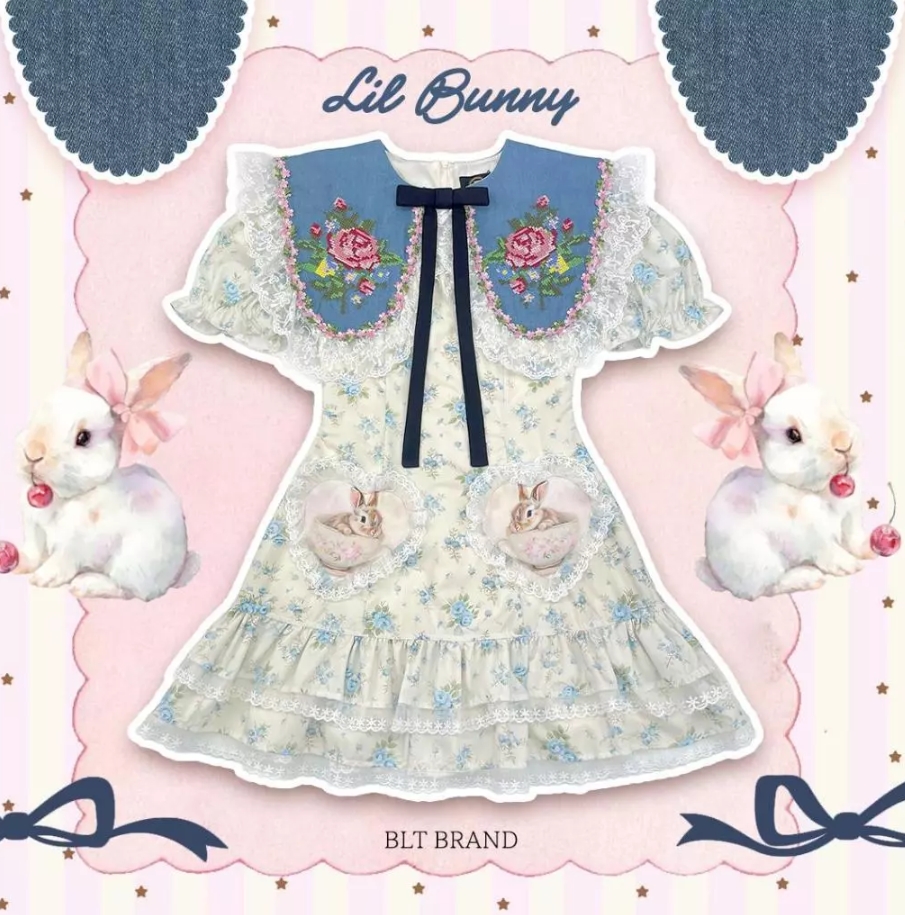 BLT BRAND MINIDRESS , Lil Bunny ปกปักดอกกุหลาบ แขนตุ๊กตา แต่งระบายชั้น