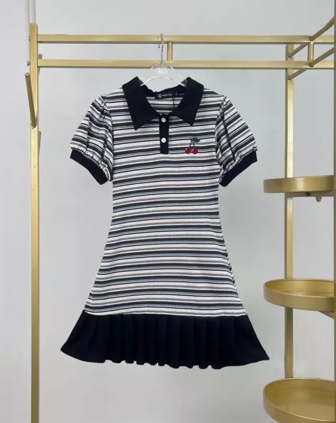 TWENTY FIVE มินิเดรสเชิ้ตคอปก ลายริ้วสุดน่ารักทรงเข้ารูปไม่ตัน ชุดเดรสสั้นใส่เที่ยว